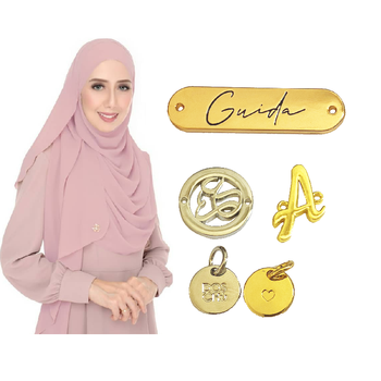 Logotipo de etiqueta de Metal dorado en blanco personalizado de alta calidad marca para tela Abaya camiseta bolso de mano sofá zapatos Jeans joyería sin deslustre
